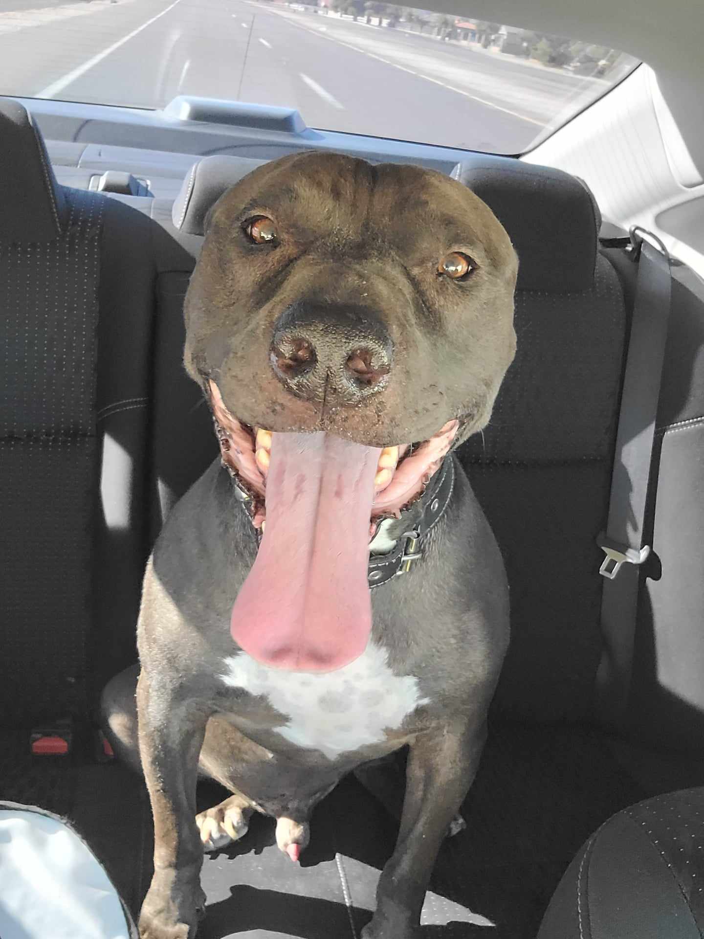 I told my husband to help me load her in the vehicle, and we drove to the closest vet, just to be told they could not see her. I begged someone to at least tell me if she had a chip! I got a super sweet girl to come out and scan her; she did take a look at her and said she was in shock and looked like she had been roaming the desert for a while and looked a bit malnourished. She even offered to take her home, and she would take care of her. We told her we would take her and make sure she was okay and try to locate her home.