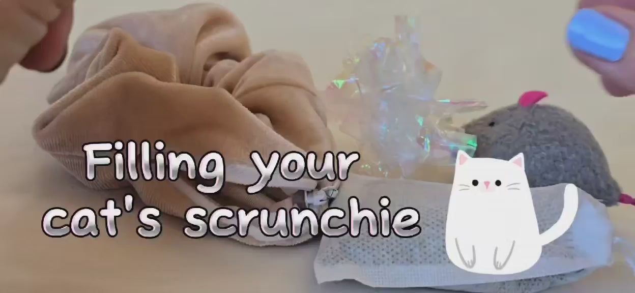 Bring fun and excitement into your cat's life with our catnip-refillable scrunchies. Each scrunchy has a secret compartment where you can place our breathable scent bags that carry our fresh California-grown catnip. To make it even more exciting, there's a cat toy surprise inside each scrunchy. Who doesn't love free stuff, right?