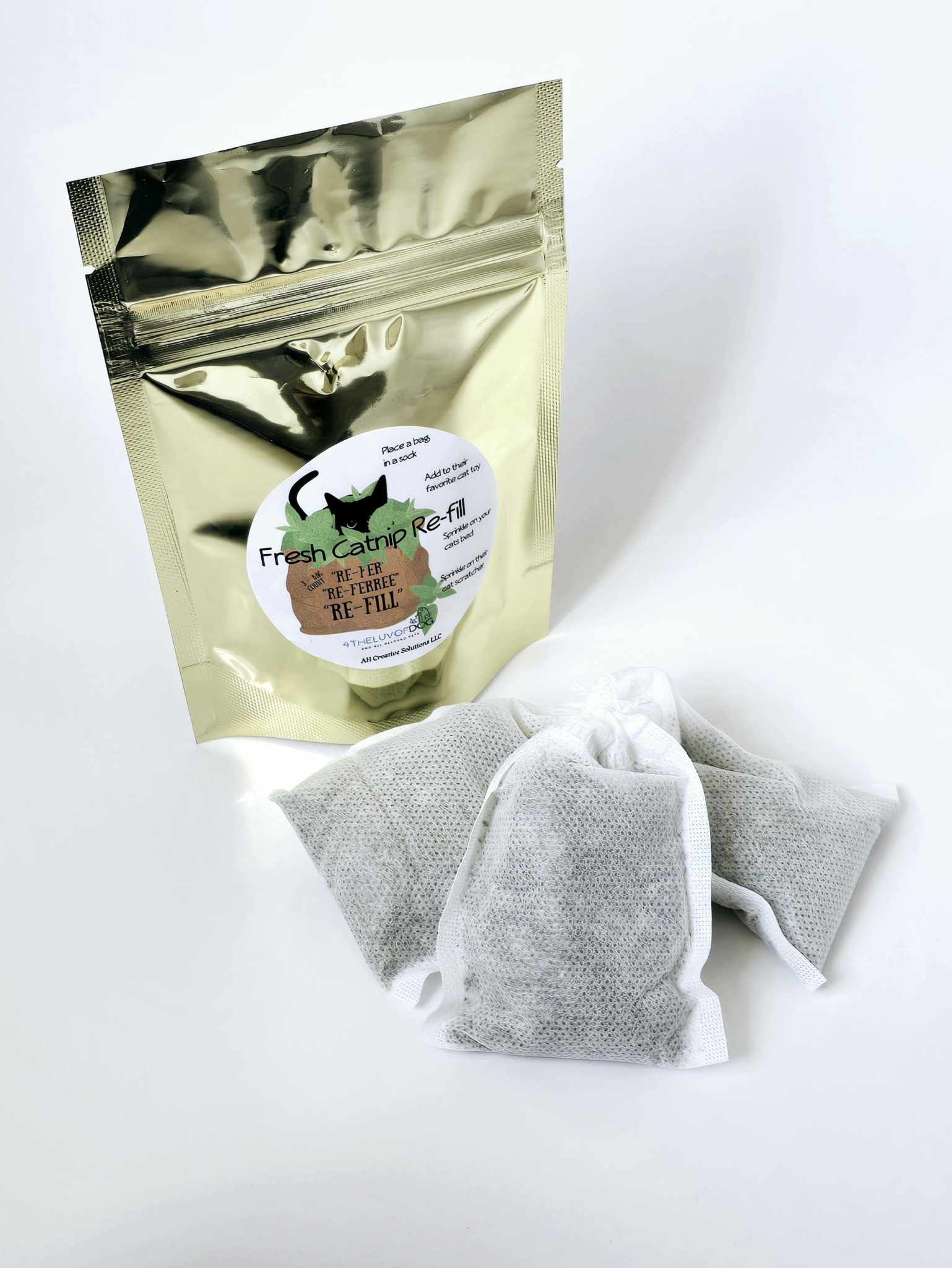 FRESH Catnip "No mess" re-fill bag inserts (3-pack) + FREE SURPRISE CAT TOY!